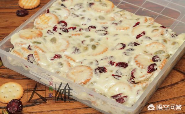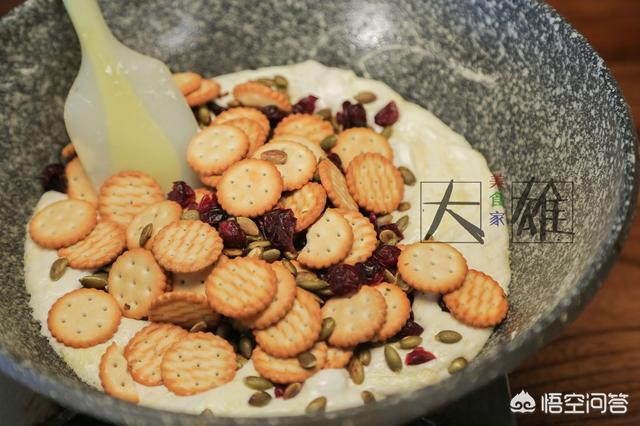 坚果也可以,巴旦木、开心果、花生等等随便换,我打算下次加点麦片试试,哈哈,不爱吃甜口的朋友也别担心,把饼干换成带点咸味的饼干,中和一下甜味, 简直是百搭神器。