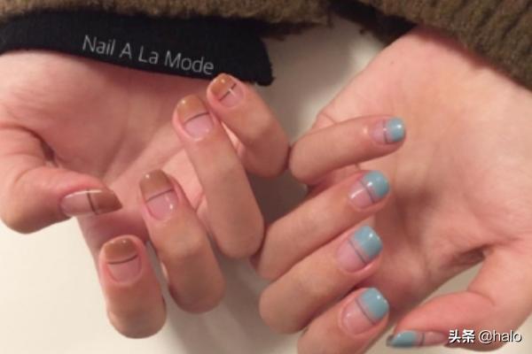 5、特别有设计的一款夏季美甲,两边是涂上不一样的颜色,个性又很新颖。