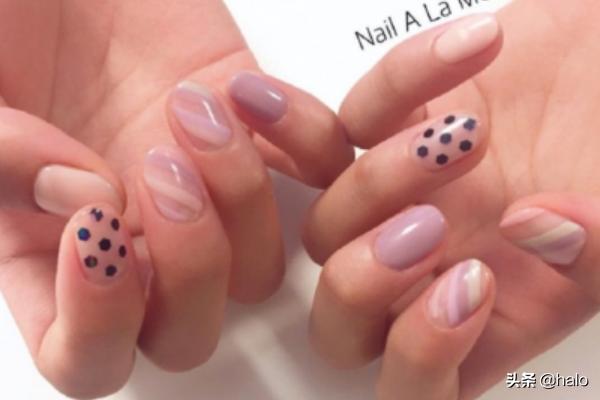 4、半涂设计款美甲也是夏季一大流行款式,色调清新又不失时尚感。