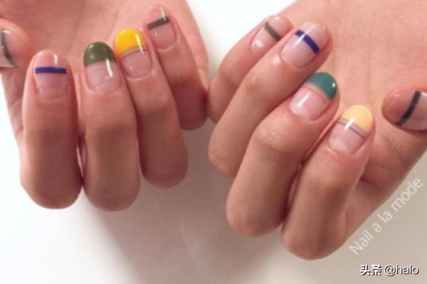3、这种拼色美甲在夏季非常受欢迎,既有撞色美感又很惊艳。