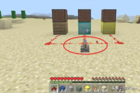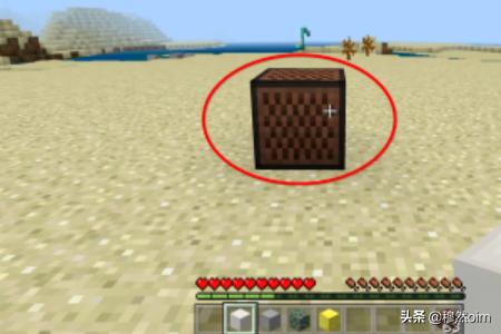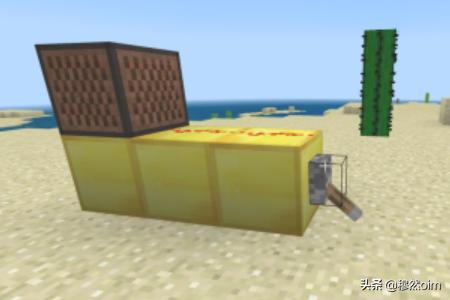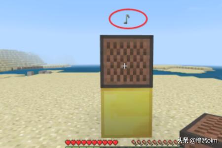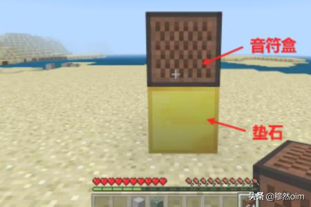 2、上图摆放是错误的,音符盒下方必须要有垫石,像金块玻璃之类都可以,不同的垫石可使音符盒发出不同的音质来。