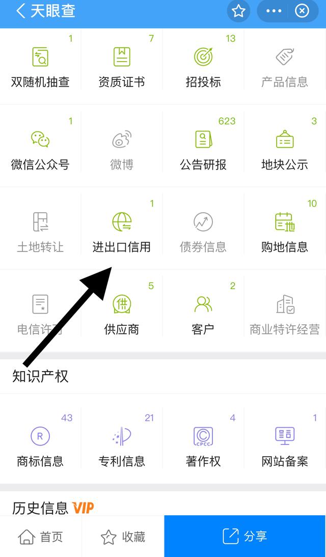4.进入页面后,向上滑动屏幕,点击 进出口信用 图标,打开