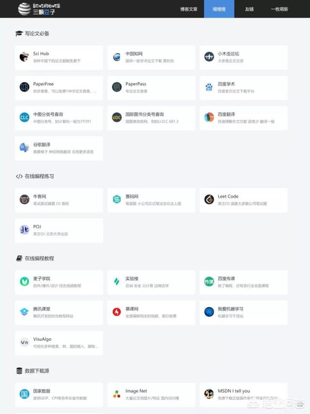 不管是在校大学生、程序员或者是其他行业的工作人员,每天必不可少的就是与电脑打交道,经常逛的一些网站也相对固定,所以我所知道的和学习有关的网站全部分享给大家(实验室师兄整理),大家可以把它当做书签使用,收藏这一个网页就相当于收藏了100多个学习网站的入口,再也不用上百度找这些网站的入口了,分分钟提高你的办事效率~