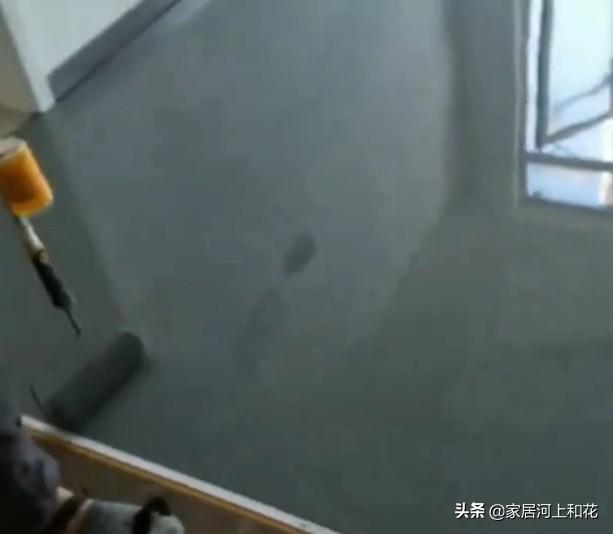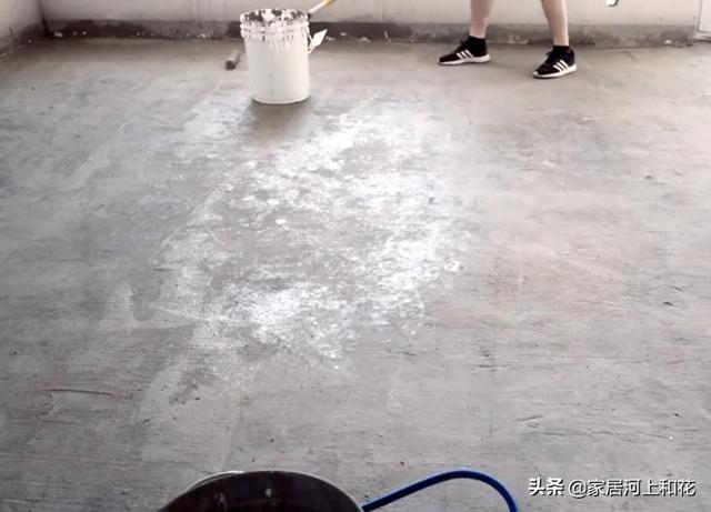 在卧室将地面用水浸湿,待水面没有积水时,使用专用地固进行滚涂。