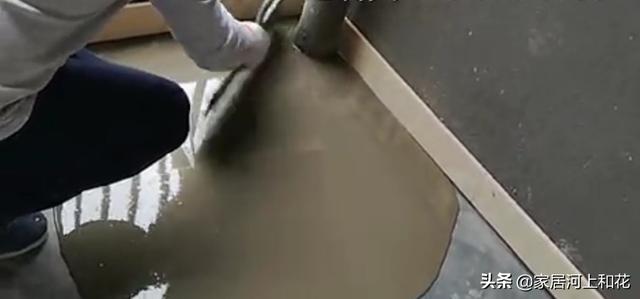 水平误差较大需做出整体找平,水泥自流平材料搅拌均匀后;