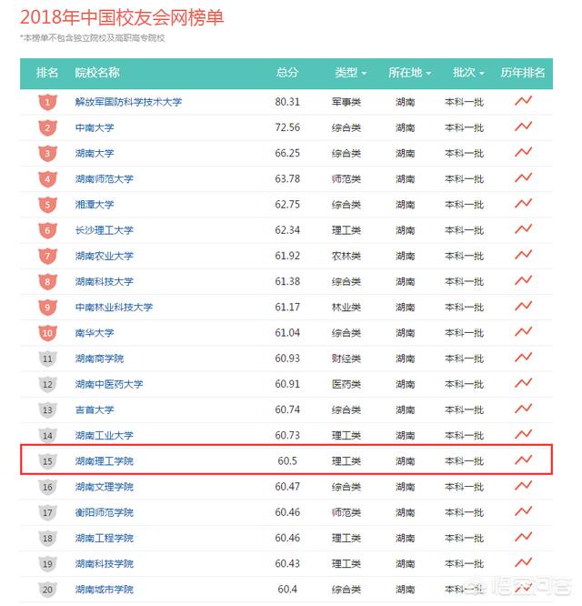 中国校友会对湖南省内大学进行了综合排名,排名结果如下:
