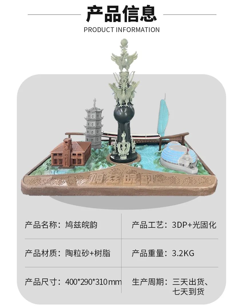之前给大家介绍的增材云平台首款芜湖标志建筑文创摆件《鸠兹皖韵》,在经过2个多月的反复修改打磨,终于定版,上架增材云啦~