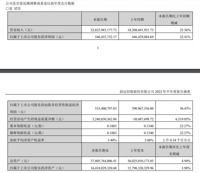 韵达股份上半年实现营收228.26亿元同比增长25.36%