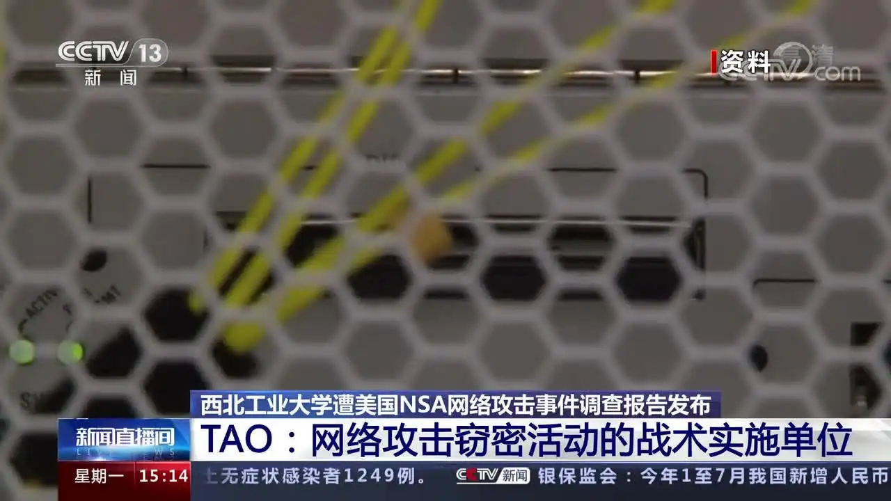9月5日,国家计算机应急处理中心(CVERC)发布了关于西北工业大学遭受境外网络攻击的报告,发现,在近年里,美国NSA下属TAO对中国国内的网络目标实施了上万次的恶意网络攻击,控制了数以万计的网络设备(网络服务器、上网终端、网络交换机、交换机、路由器、防火墙等),窃取了超过140GB的高价值数据。