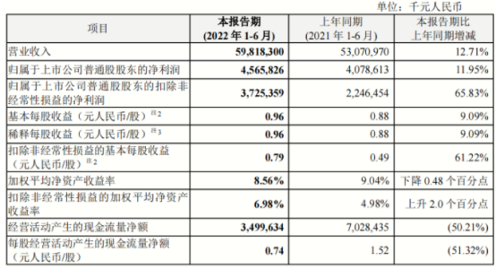 据此前中兴通讯披露的半年报显示,2022年上半年公司实现营业收入598.18亿元人民币,同比增长12.71%;实现归属于上市公司普通股股东的净利润为45.66亿元人民币,同比增长11.95%,基本每股收益为0.96元人民币。