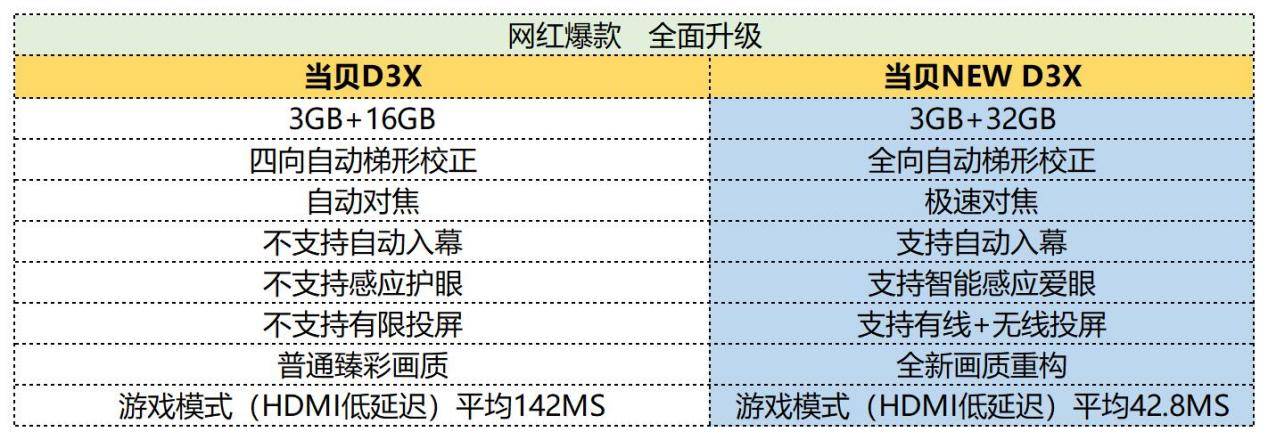 首先我们先来看看当贝NEW D3X对比前一代当贝X3有哪些升级点
