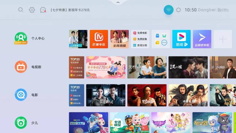 当贝NEW D3X使用的操作系统是“当贝OS”,这个系统最大的特点就是“轻、快、自由”