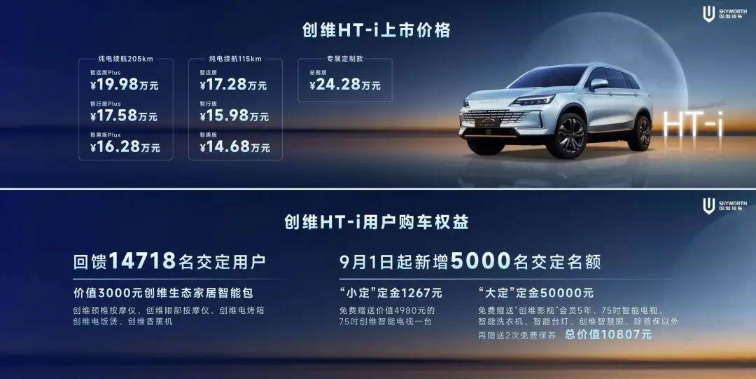 或许是吸取了教训,创维近日推出的HT-i混动 SUV,则直接放弃了纯电,选择了插电混动模式,而且是首款搭载DM-i超级混动的非比亚迪车型,因此也被称为是“比亚迪平替”。