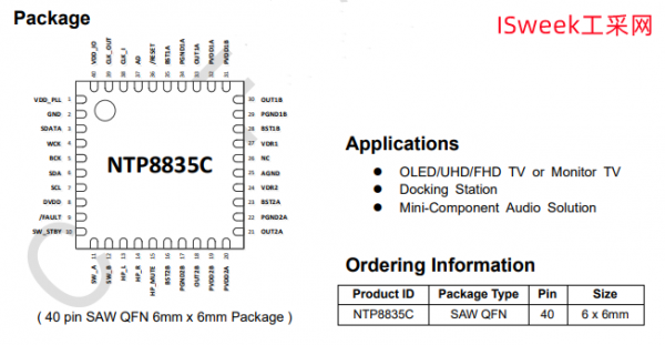 微软原文标题!I2S数字输出30W双声道功放芯片-NTP8835C