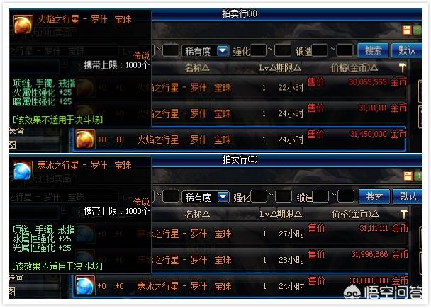 红眼首饰附魔,必须选择属强,可不要傻傻的选择独立,现在版本的毕业属强有“罗什”25双属强和“罗什”23全属强,但我建议你选择25双属强,共有两种,一是“罗什冰光25”3300万,还有是“罗什暗火25”3100万,根据自己的属强需求选择,拍卖价格近期有大幅度的下降。