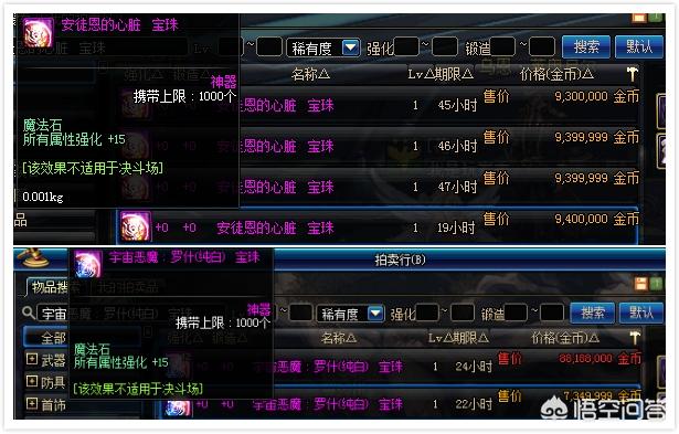 右槽附魔还是选择属强,目前最高的是15全属强,共有两种,一个是大家都知道的“安图恩心脏”满属性宝珠,价格在930万左右;还有一个是“宇宙恶魔罗什白”宝珠,价格在730万左右,同样的属性,但是由于后者是刚出的新卡,很多勇士不知道。