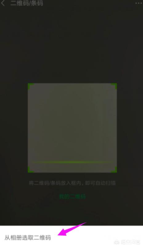 7、选择【从相册选取二维码】,选择刚刚截图的二维码截图,如图。