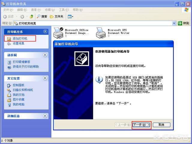 五、在客户端电脑添加”网络打印机“、点击”开始“菜单-”设置“-”打印机“,打开打印机窗口点击”添加打印机“,接着点击”网络打印机连接到其它计算机“选项、按提示点击”下一步“就可以了,按着系统提示操作就可以了!