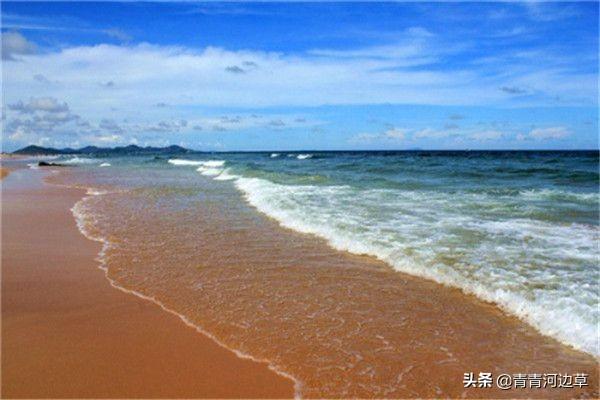 10湛江东海岛湛江东海岛是一个平坦而开阔的大海岛。东海岛的海滩长28公里,宽100- 300米,海湾呈新月形,仅次于澳大利亚的“黄金海岸”沙滩,因此,东海岛的海滩应该算是全球亚军,全中国第一长。湛江东海岛上的沙滩、蓝天、白云,与其他海岛无异,但沙滩上的日升日落十分壮美。或许是因为长滩所提供的背景视野宽阔的缘故,东海岛适合静看日之轮回。岛上最让人心动的是吃海鲜。不到湛江东海岛,不明白海鲜为什么叫“生猛海鲜”?不到湛江东海岛,不清楚海鲜原来可以如此甜美。