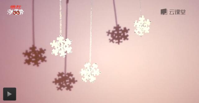 找一些废弃的拼图碎片,在一个拼图的周围粘上6个拼图,形成一个雪花的形状,在雪花的角上粘上钻石,再撒上少许闪粉装饰,用丝带将雪花粘住挂起来,blingbling的雪花有没有很美呢~