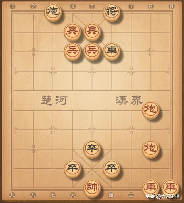 大鹏展翅又名观灯十五、雁阵横空,是标准的古谱残局。难度没有特别大,就是看第一步,红旗是先平前车还是后车,选对了就是和,选错了,就是输,