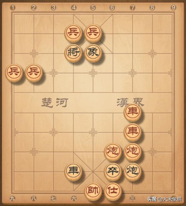 千里独行。此局叫千里独行也是有一定深意的,因为走到后面,黑1路边卒和红七路兵各自长驱直入,小小兵卒,一鼓作气冲到对手腹地,很符合千里独行这个名字。也有人管此局叫单枪赵云,也是形神具备了。此局用到的是兵卒残棋,是残棋类型中最细微的一种,非常考验人的基本功。