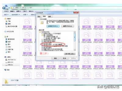 再高级设置里面,找到“始终显示图标,从不显示缩略图”选项,并将前面方框里面的√去掉,然后点击“确定”即可。