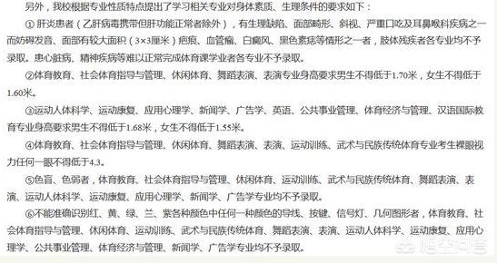 每年的体育类招生简章,都会对所有考生的身体素质方面有一定的要求。除了体育生有要求外,非体育生基本要求考生无先天疾病,不色盲,能够识别红黄绿等颜色。北京体育大学对学生参考的身体素质要求如下: