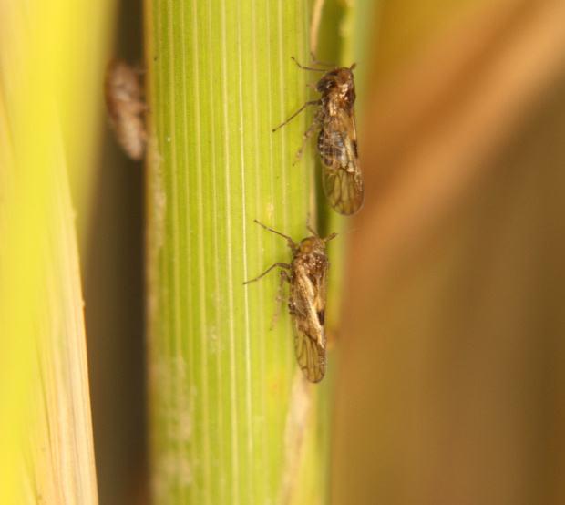 二:下面两张图是灰飞虱,比褐飞虱身躯稍短一些腹部大一些,颜色也浅一些。