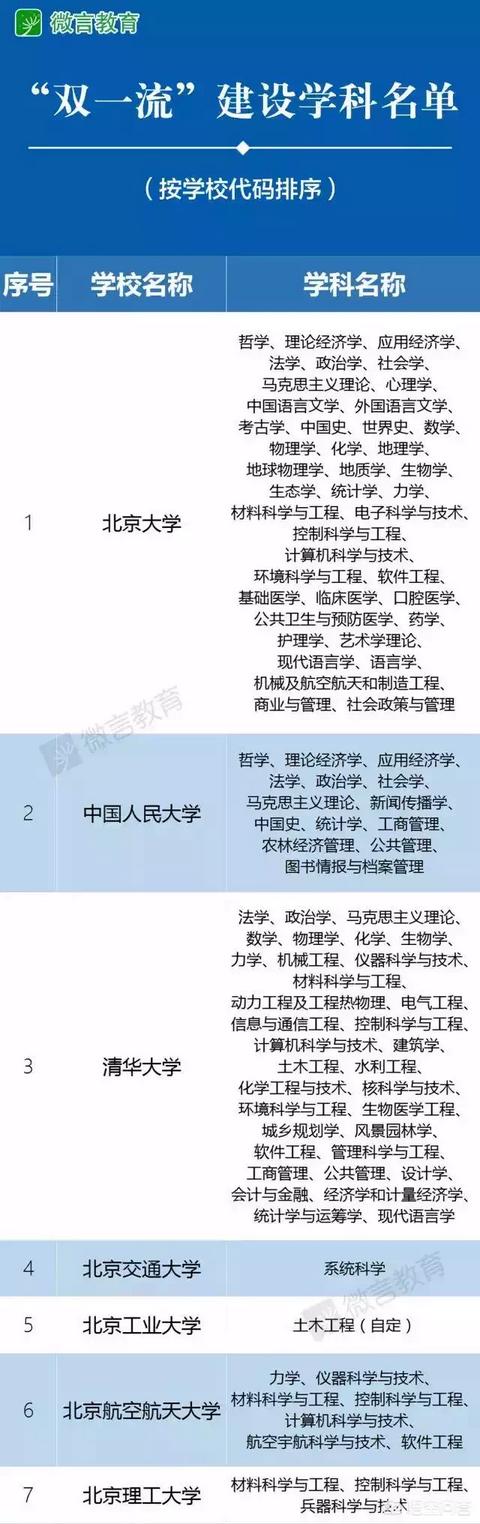 “双一流”,2017年9月提出,即建设世界一流大学和世界一流学科,继“211工程”、“985工程”之后又一国家重大教育工程。目前,“双一流”大学42所(39所985院校+3所新进院校,分A类36所,B类6所),世界一流学科建设高校95所(学科共计465个)。详细名单如下: