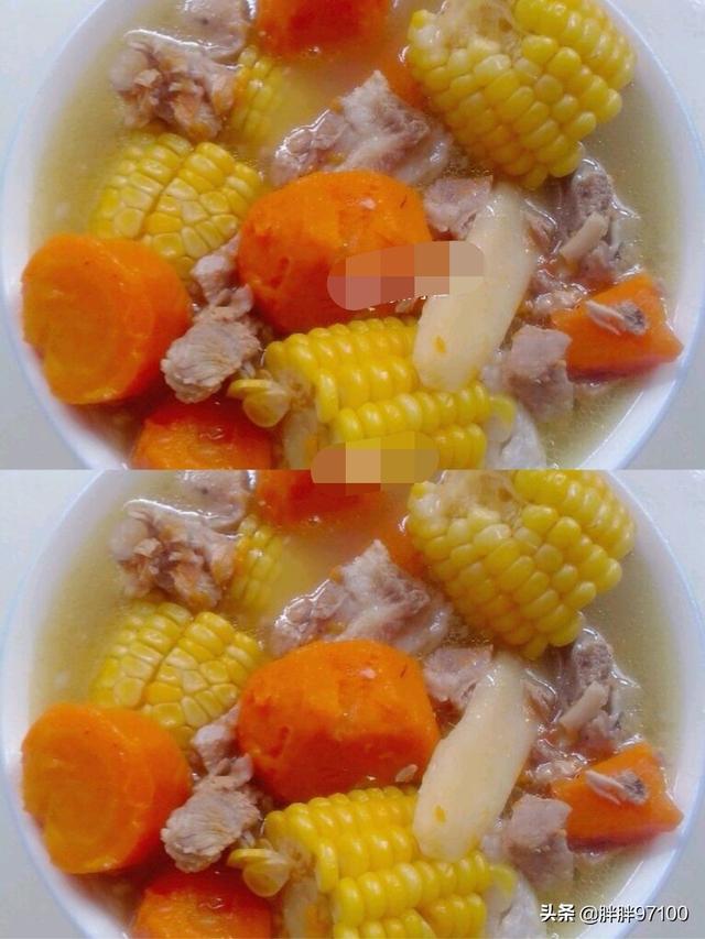 排骨洗净,玉米、胡萝卜去皮切块;锅倒水,水沸后将排骨烫一烫,捞出后用冷水冲。将冲洗干净的材料放锅中,再倒入足够的水。中火等水烧开后小火慢炖1个半小时左右即可。养胃好消化,缓解孕妇食欲不振。
