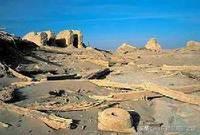 4 :相机参数设置: 存照片设为RAW格式,白平衡设为偏暖,拍出的照片沙子,才有金黄色感觉及复古感,对焦连续F一A,测光点测光,自动检测人脸 拍照,焦对在眼睛上。相机釆用快门优先,快门速度,进光量够,尽量快。 二 :修片,将照片导入Ps的cameraRAW中转档,将爆光,阴影,白色,黑色等调正确,还调不好可调下曲线,再调下hsl,相机校准调下色,风格往暖色复古彖,导入ps修痘,班块,杂色,均衡皮肤颜色,经液化,高低,频磨皮,锐化,高反差保留即ok。 以上方法針对楼兰古城场景。以下为楼兰古城图,来自百。度。