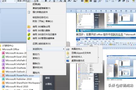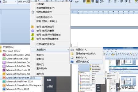 第六步:接着在展开的子菜单中选择“桌面快捷方式”,这时PPT2010的快捷方式就出现在计算机桌面了。