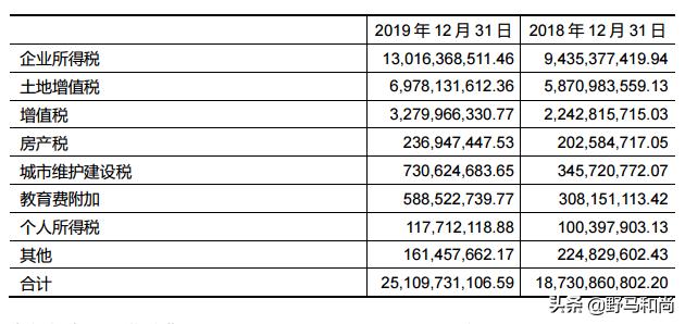 2018年度万科地产应交税费187.30亿元,实现营业收入2976.79亿元: