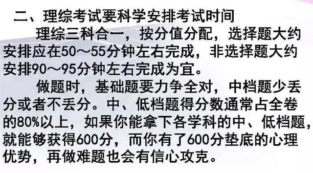 另外,通过刷理综题可以把握住每种题目该花的时间,理综选择题不能超过60分钟,三道选修题不能超过30分钟,相信在不断的刷题过程中这些都能够把握好,时间快超了就要马上放弃,不能因小失大。