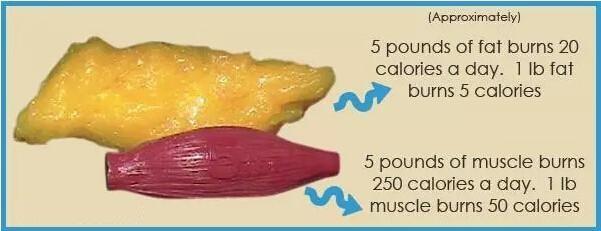 看看下面同样重的肌肉和脂肪,其体积对比情况,你就知道为什么体重没怎么长,但是身材却显得更胖的原因了。