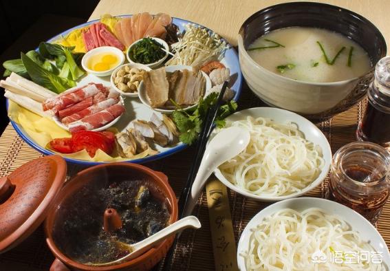 过桥米线源自云南,相传是古代有位妻子为了让攻读的丈夫,能吃上热乎乎的米线,便在煮米线的高汤中,倒入热油保温,食用时,因汤面温度高,需要将砂锅中的米线盛出小碗冷食,米线在两碗之间架起一座“桥”,故而得名。