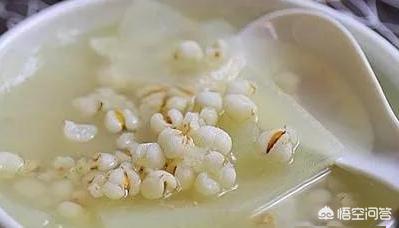 薏米100克、冬瓜250克,煮汤,食盐调味。
