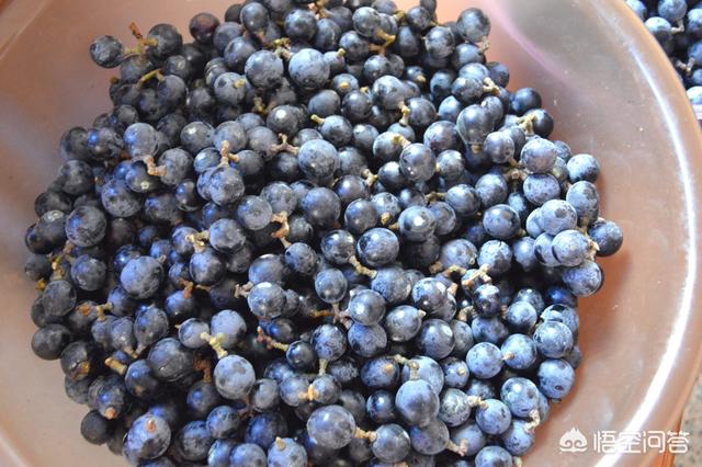 一般酿酒用的葡萄和当水果吃的葡萄品种是不一样的,酿酒用的葡萄大多都是颗粒小、皮厚、酸涩。我们这里有一种山葡萄,酿出来的葡萄酒味道不错,到七八月份,很多人都到水果市场买葡萄回来自己酿酒。我们家也几乎每年都要酿几大罐,逢年过节很少喝其它酒,都是喝自己酿的葡萄酒。