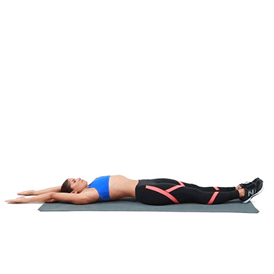 做法:屈双膝,小腿平行于垫子,双手伸直向天花板的方向,吸气,呼气的时候,右腿和左手向下,吸气向上换另一侧,交替动态练习,练习20组。