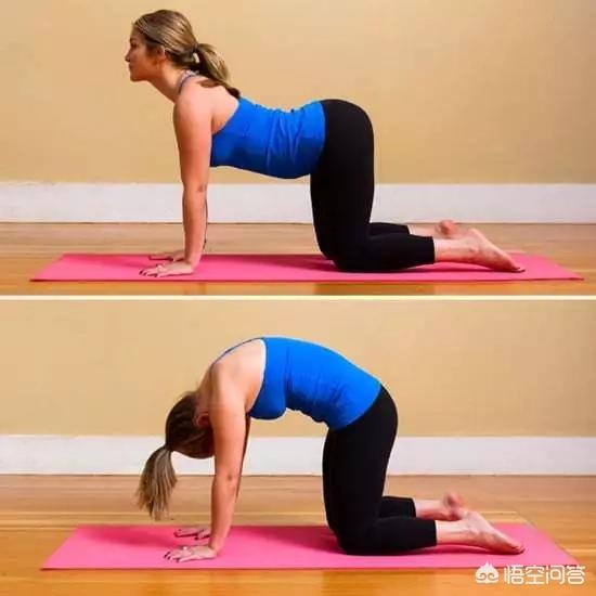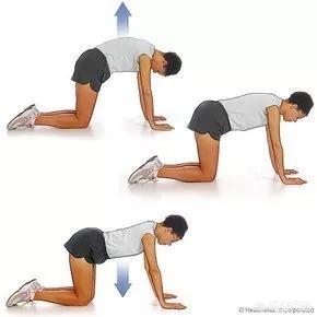 做法:吸气,脊柱一节一节向上延展,呼气,脊柱一节节拱起。注意跟随呼吸时,肋骨内收,带着这个意识动态练习20组。