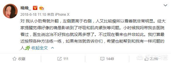 后来她自己也在微博上回应了大家的疑惑,“肋骨从小就外翻,因为瘦所以尤其明显”,但是会通过有效的方法进行改善。