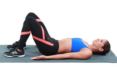做法:双脚掌踩地,大小腿夹角大概90度,双手自然放在身体的两侧,放松身体,然后吸气,呼气的时候将臀部向上抬高,尾骨向后拉,伸直背部肌肉,在这里动态练习20次,然后重复3组。