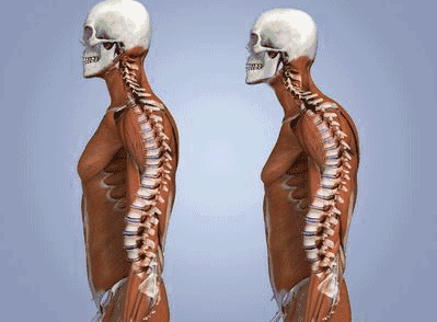 骨盆前倾,腰椎过度向前,造成了腹部无力,背部肌肉变短且紧张,胸椎也会发生变化,肋骨向前。