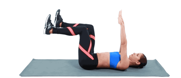 做法:仰卧在垫子上,双腿伸直向前,双手高举过头顶,吸气,呼气的时候,双腿保持不动,卷起躯干双手向双脚的方向伸直,重复做5组。