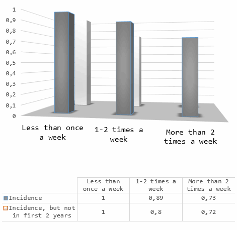 上图:蘑菇(麦角硫因)摄入与老年痴呆症发生事件的统计学关系(显著)。