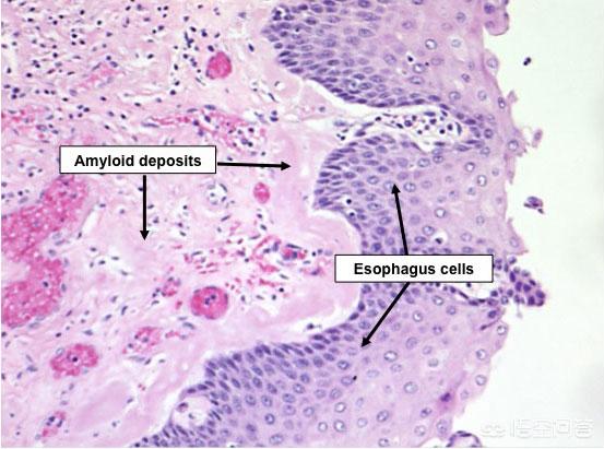 上图:脑组织切片中的β淀粉样蛋白聚集。左上标签(Amyloid deposits)。