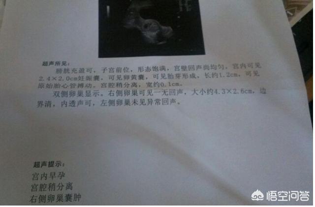 孕40天的B超单,排卵比较早,胎儿发育良好,可以很幸运地看到子宫内有妊娠囊,卵黄囊,胎芽长度,胎心管搏动,这种情况可以排除宫外孕。
