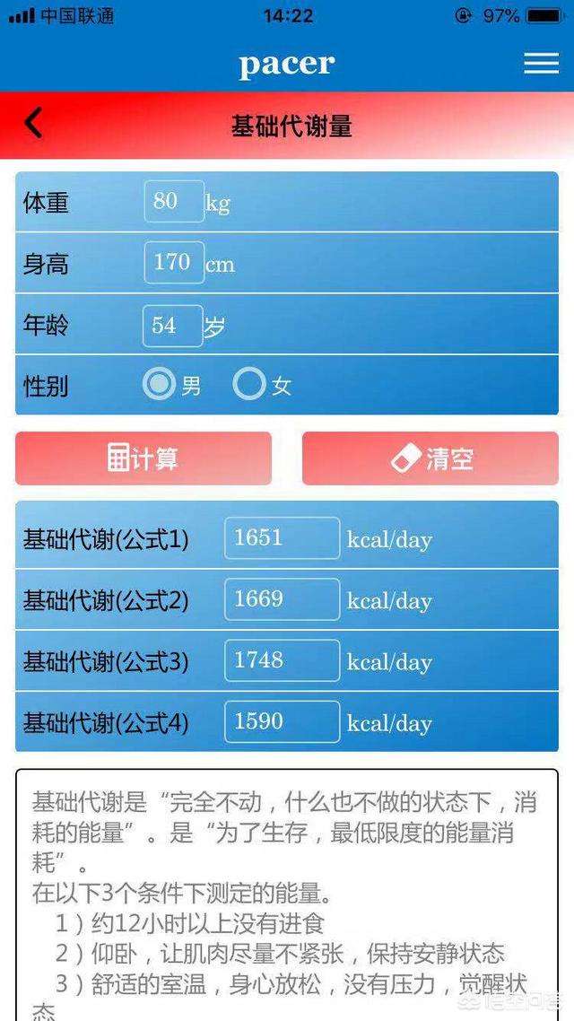 基础代谢率公式(54岁的男性基础代谢率为每天1620千卡是什么水平)