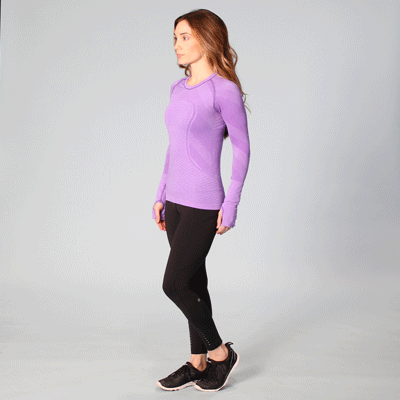 ●向后踢臀部:站立,尽力用小腿向后去触碰臀部,建议每侧做5~10次。一做这个动作的时候一定要慢,以免摔伤,可以扶住椅子或者是墙壁做这个动作。